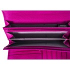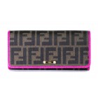 Chic wallet in double F logo with fuchsia leather trim, 2 bill folders, 1 zipper coin pocket, 12 credit card slots, 1 flat pocket. H9.5W19.5D4cm